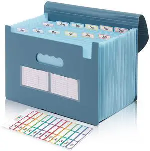 Accordion File Organizer, Expanding File Folder with 13 Pockets, Portable Document Paper Bill Receipt Organizer, Home School Office Supplies, Letter A4 Size Haze Blue