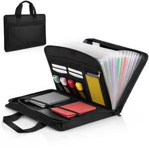Accordion File Organizer, Fireproof Expanding Folder with 13 Pockets, Portable Document Storage for Travel, Home, Office, Letter and A4 Files, Black