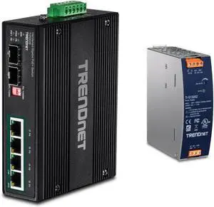 TRENDnet Bundle 6-Port Hardened Industrial Gigabit PoE+ DIN-Rail Switch TI-PG62, 150W 52V DC 2.89A AC to DC DIN-Rail Industrial Power Supply TI-S15052