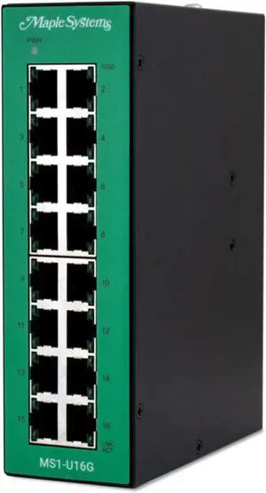 MS1-U16G Industrial Ethernet Switch, 16-Port Gigabit, Metal Housing, DIN-Rail Mount, 1.97x6.43x4.72 inch, 1.94 lb, 12-48VDC