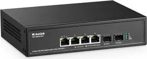 MokerLink 4 Port 2.5G PoE Switch with 2 Port 10G SFP+ Slot, 4 x 2.5G Base-T Ports Compatible with 10/100/1000Mbps, IEEE8023af/at PoE 78W, Metal Unmanaged Fanless Small Network Switch