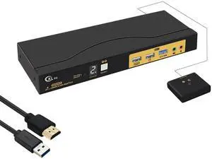 HDMI KVM Switch 2 Monitors 2 Computers 8K@60Hz 4K@120Hz, with 4 USB 3.0 Ports for 2 Computers Sharing 2 Monitors, Extended/Copy Mode, with Power Adapter,Includes Remote & 2 USB Cables