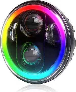 5.75inch RGB Headlight 5 3/4'' Led Headlight with White RGB Halo Bluetooth Remote Control Music Mode 40W H/L Beam for Harley Sportster Dyna