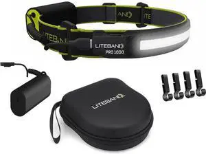 Liteband PRO Bundle 1000 Lumens LED Headlamp Rechargeable Battery Powered, Bright Tactical Head Lamp Flashlight Hard Hat Light, Mechanic Lamps, Camping, Running, Best Rated For Forehead, Carbon