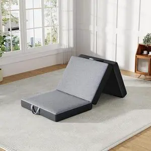 Trifold Mattress, Single Foldable Floor Mattress 3 inch Memory Foam with Washable Cover Non-Slip Bottom, Tri Folding Bed Topper for Guest & Travel