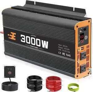 3000 watt car Power Inverter with Remote Controller, 12v dc to 110v ac Modified Wave Power inverters for Vehicles, Ideal for Home, Emergency, Camping, rv, Truck, and Travel Inverter 3000w