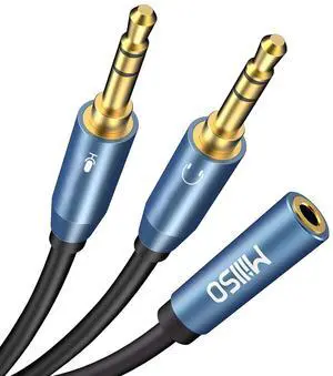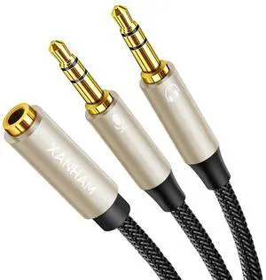 Headset Adapter 3.3 Feet 3.5mm Audio Jack Y Cable Headphone Adapter 1x 3.5mm Female to 2X 3.5mm Male Headset Adapter for Double-Jacks PC