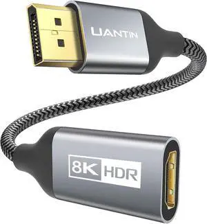 8K DisplayPort 1.4 to HDMI 2.1 Adapter with 4K 240Hz / 8K 60Hz Unidirectional DisplayPort to HDMI 2.1 Cable Adapter Supports RTX4080 RX7900 Not Work with PS5/Xbox No VRR Support