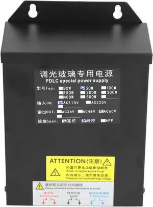 AC60V 50W Smart Power Supply Smart Power Supply, Switchable Glass Power Supply Intelligent PDLC Glass Dimming Power Supply with Remote Control Receiver for Projection Equipment