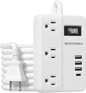Cruise Essentials,6 Ft Power Strip with 3 Outlets and 4 USB Ports(1 USB C), Non Surge Protector for Cruise Ship, Travel, Home Office, ETL Listed, White