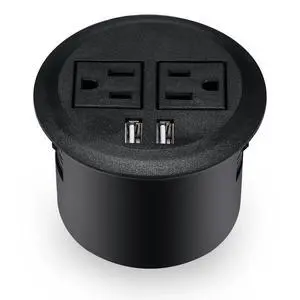 Desktop Power Grommet Power Outlet Socket Desk Data Center 2 Outlet with 2 USB Ports with 10 FT Extension Cord Black