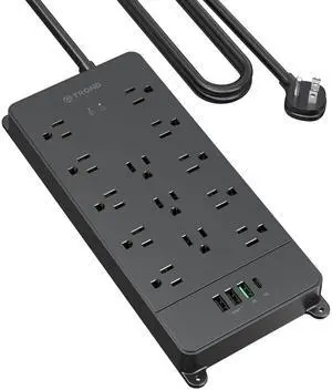 Power Strip Surge Protector with 12 Outlets & 4 USB Ports & 1 USB-C Port (5V/3A), 2360 Joules, Angled Flat Plug, Spaced Outlets & ETL Listed Power Outlet for Home Office - Black