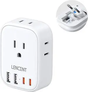 European Travel Plug Adapter, LENCENT US to Europe Type-C Foldable Power Plug with 4 Outlets 4 USB Ports (2 USB C), Power Adaptor for USA to EU Euro Iceland Spain Italy France Germany Greece Portugal