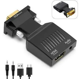 Specifications: 1.Input ports: VGA, 3.5 mm audio, USB power port 2.Output ports: HDMI-compatible female 3.Dimensions: 66 x 55 x 20mm 4.Weight: 40g 5.Supported input resolutions (at 60Hz): 640x480, 800x600, 1024x768, 1280x720, 1600x1200, 1920x1080 pixels 6. BYPASS Converter, Output support HD 1080p, 1080i, 720P, 480i and other resolutions