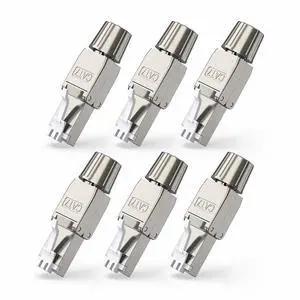 Cat7 Cat6A RJ45 Connector 6-Pack, Tool-Free Zinc Alloy Shielded Ethernet Termination Plugs for Cat7 up to 23AWG Solid Bulk S/FTP Ethernet Cable