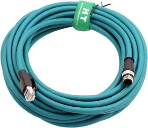 HangTon Ethernet M12 4 Pin D-Coding RJ45 CAT5e Shielded Cable for PC PLC Profinet Network PoE Power Smart Camera Code Reader Sensor 40m