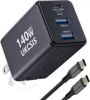 140W USB C Charger, 4-Port GaN Foldable Fast Wall Charger,100W Laptop Fast Charger Adapter for MacBook Pro 16 14 Mac Air 15 13 inch,iPad Pro,iPhone 16/Pro,Dell XPS 13,Note 20/10+,Samsung,Pixel etc