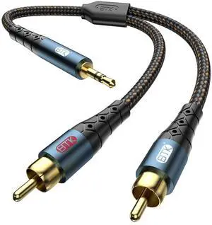 3.5mm to 2RCA Cable 24K Gold-Plated Nylon Braided RCA to Auxiliary Stereo Audio Headphone Male to Male 1/8 to RCA Cord for Tablet,Subwoofer,Home Theater,DVD Speaker,MP3/MP4,Player 3.3ft/1m