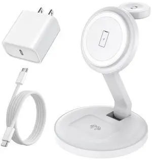 Travel 3 in 1 Charging Station for Apple Magsafe Charger, Foldable Wireless Charger Stand Compatible for iPhone Multiple Devices Apple Watch/iWatch/Airpods/iPhone 14 13 12 Pro Max(White)