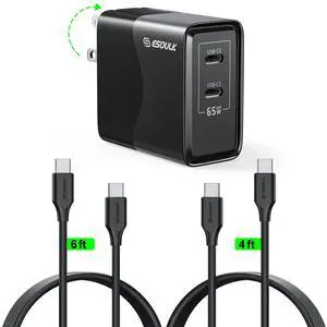 Esoulk Premium 65W GaN 2-Port Dual USB-C Wall Charger Adapter with 2 Cables for iPhone 17 Pro Max, Macbook, iPad, Samsung
