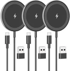 3-Pack 15W Magnetic Wireless Charger: Qi2 Fast Charging Pad for iPhone Air 17 16 15 14 13 12 Pro Max, Samsung Galaxy S26 S25, Google Pixel 10, AirPods-Slim Portable for Desk Bedside Travel-Black