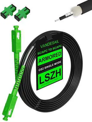 30M SC/APC Fiber Optic Internet Cable 100ft, Outdoor Armored SC/APC Fiber Patch Cable, SC to SC Single-Mode OS2 Fiber Jumper SIMPLEX with 2 Couplers, LSZH Black