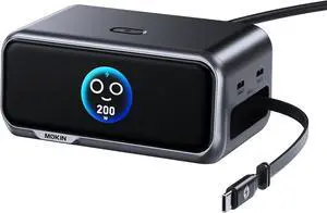 200W Charging Station 6-Port GaN Fast Desktop Charger with LCD Smart Display Control and Retractable Cable for iPhone Galaxy MacBook Dell and Gaming Desk Accessorie