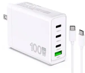100W USB C Charger Block 4 Port Type C Charging GaN USB C Charger Compatible with MacBook Pro/Air iPad iPhone16/15/14/13 Pro Max Lenovo Hp Dell Asus Acer Galaxy S24/S23 Fast Wall Power Adapter