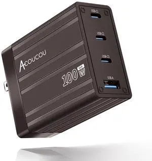 100W USB C Charger, 4-Port GaN Fast Charging Foldable Compact Laptop Charger Power Adapter for MacBook, Ipad, iPhone, Galaxy S24 Ultra, Steam Deck, Google Pixelbook and More