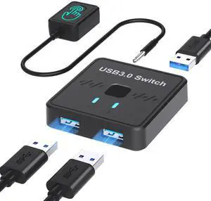 USB 3.0 Switch, Bi-Directional USB Switch 2 in 1 Out / 1 in 2 Out, USB Switcher 2 Computers Share Keyboard Mouse Scanner Printer, USB KVM Switch Compatible with Mac/Windows/Linux