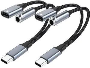 JVFYI USB-C Type-C Male to Dual Female Audio DAC AUX Music 16bit 48kHz & 100W PD Power Cable for Laptop Tablet Phone