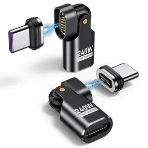 16PIN 240W USB C Magnetic Adapter(2Pack)/180° Rotation USB C Right Angle Adapter/90 Degree C Adapters/Type C Magnetic for 1Phone 16/15/Ma-Book/1Pad Series, Samsung Galaxy, Google Pixel, Laptop