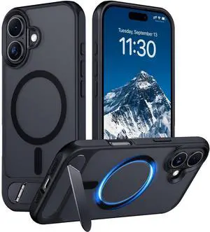 Magnetic Compatible with iPhone 16E Case, [Built-in Invisible Kickstand][Compatible with MagSafe][Military Grade Shockproof] Slim Translucent Matte Case for iPhone 16E 6.1" 2025