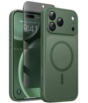 Magnetic Case for iPhone 17 Pro Max with Privacy Screen Protector [Compatible with MagSafe][Camera Protection][Military-Grade][Camera Control Cover]Translucent Matte 17 ProMax Phone Case,Green