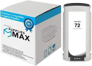 SuppliesMAX Remanufactured Replacement for HP DesignJet T610/T620/T770/T790/T795/T1100/T1120/T1200/T1300/T2300 Matte Black High Yield Wide Fomat Inkjet (130 ML) (NO. 72) (C9403A)