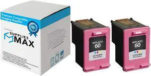 SuppliesMAX Remanufactured Replacement for HP DeskJet D2500/D2600/D5560/F4200/F4400/F4580/ENVY 100/110/120/PhotoSmart C4600/C4700/D110a Tri-Color Inkjet (2/PK-165 Page Yield) (NO. 60) (CZ072FN)