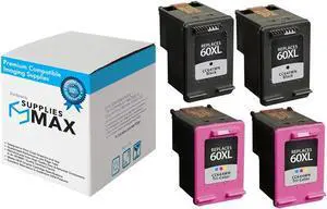 SuppliesMAX Remanufactured Replacement for HP DeskJet D2500/D2600/D5560/F4200/F4400/F4580/ENVY 100/110/120/PhotoSmart C4600/C4700/D110a Inkjet Combo Pack (2-Black/2-Color) (NO. 60XL) (CD948BN_2PK)
