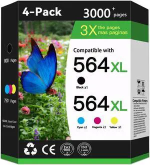 564XL Ink Cartridge Compatible for HP 564XL Ink Replacement for 3520 4620 C309A B209 C6340 D5460 5510 Printer.(1Black 1Cyan 1Yellow 1Magenta, 4-Pack)