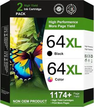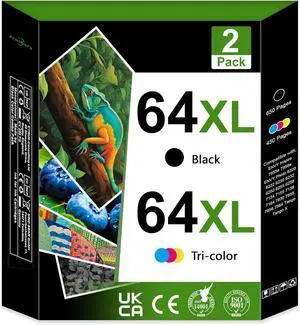64XL Ink Cartridges Replacement for HP 64XL HP Ink 64XL Black and Color Combo Pack Work for HP Envy Inspire 7955e 7958e 7255e Photo 7155 7858 7155 7100 7800 7900 7855 6222 Tango (Black Color, 2 Pack)
