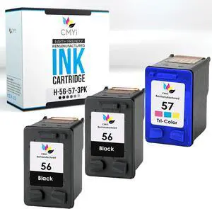 CMYi 56 57 Replacement Combo Pack Ink Cartridge for HP OfficeJet 4110, 4110v, 4110xi, 4215, 4215v, 4215xi, 4219, 4255, 5500 Series, 5505, 5508, 5510, 5510v, 5510xi, 5515 Printers (2 Black, 1 Color)