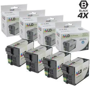 LD © Compatible Replacements for Epson T252XL120 T252 XL Set of 4 High Yield Black Ink Cartridges for use in Epson WorkForce WF 3620, 3640, 7110, 7610, and 7620 Printers