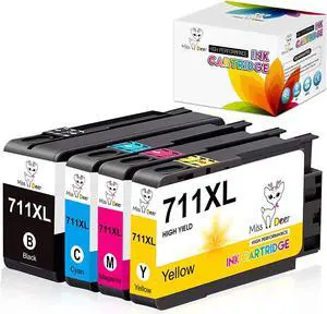 Miss Deer 711XL Ink Cartridges Replacement 711 711XL Ink,Work Designjet T120 T520 24-in T520 36-in Printer (Black,Cyan,Magenta,Yellow) 4 Pack