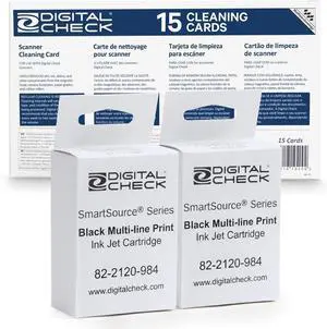 Ink Cartridge Bundle with 2 Black Multi-Line Print 82-2120-984 and 15 Scanner Cleaning Cards and Sheets, Ideal Bundle for Businesses Needing Reliable C6GQRY55T9