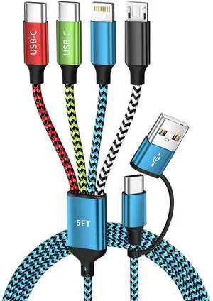 Travel Essentials, Dual Type-C 4 in 1 Charging Cable 2 Pack 5FT Multi Charging Cables for All Devices,iPhone Charger Cord Adapter 2 USB-C/IP/Micro Port for Cell Phones Tablets Samsung Galaxy PS & More