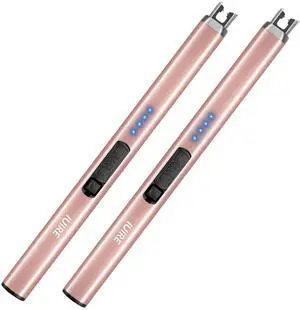 LcFun 2 Pack Candle Lighter Electric USB Rechargeable Plasma Arc Lighter with Safety Lock, Windproof Flameless Long Lighters for Candle, Grill, BBQ, Camping, Gas Stoves (Silver, Rose Gold)- Brand: Kaito