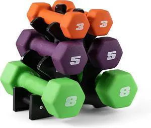 CAP 32 LB Set of Neoprene Dumbbells with Rack | 3, 5, 8 LB pairs