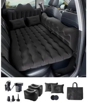 VEVOR Car Air Mattress, Inflatable Back Seat Car Camping Mattress, Flocking Travel Beds, Durable Portable Sleeping Pad with Air Pump, 2 Pillows, Nozzle, Carry Bag, Fits Most SUV MPV Sedan, Black