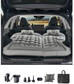 VEVOR Car Air Mattress, Inflatable Car Camping Mattress, Flocking Thickened Travel Beds, Comfortable and Durable Portable Sleeping Pad with Air Pump, Nozzle, Carry Bag, Fits Most SUV MPV Sedan, Gray