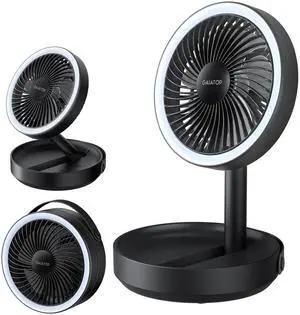 Foldable Small Desk Fan with LED Night Light, Wireless 6000mAh Battery Powered Portable Fan USB Rechargeable, Bedroom Office Dorm Travel Camping Cruise Essentials, Gifts for Women Men, Black