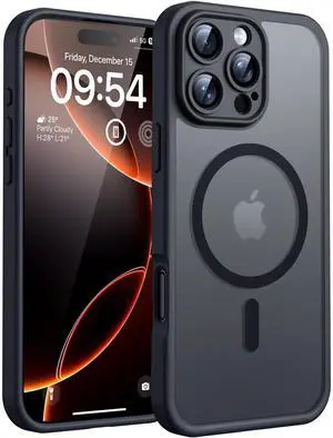 for iPhone 16 Pro Max Case, Compatible with Magsafe, Full Camera Protection, Drop Protection, Magnetic Translucent Matte Back Bumper Phone Case for 16 Pro Max 6.9-Inch (Black)